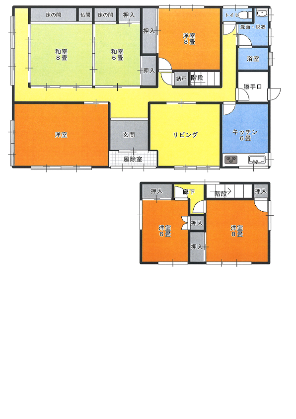 | 構造 | 木造(W造)・亜鉛メッキ鋼板葺 | 間取り | 7K |